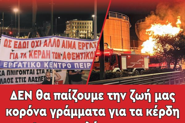ΕΡΓΑΤΟΫΠΑΛΛΗΛΙΚΟ ΚΕΝΤΡΟ ΠΕΙΡΑΙΑ Πειραιάς, 28/01/2026 ΑΝΑΚΟΙΝΩΣΗ Κέρδη βουτηγμένα στων εργατών το αίμα! Το Εργατικό Κέντρο Πειραιά καταγγέλλει την εργοδοσία στη βιομηχανία «Βιολάντα» στα Τρίκαλα όπου μπροστά στα κέρδη της δεν υπολογίζει την ασφάλεια και τις ζωές των εργαζόμενων. Η έκρηξη στη βιομηχανία είχε σαν τραγικό αποτέλεσμα το θάνατο πέντε εργατριών και τον τραυματισμό επτά ακόμη…
