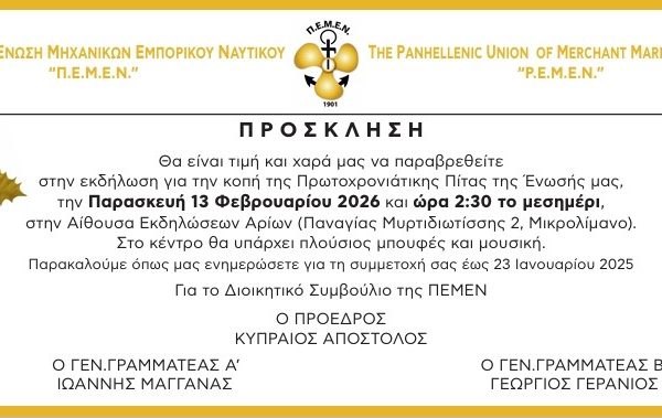 ΠΑΝΕΛΛΗΝΙΑ ΕΝΩΣΗ ΜΗΧΑΝΙΚΩΝ ΕΜΠΟΡΙΚΟΥ ΝΑΥΤΙΚΟΥ (Π.Ε.Μ.Ε.Ν.) ΠΑΝΕΛΛΗΝΙΑ ΕΝΩΣΗ ΚΑΤΩΤΕΡΩΝ ΠΛΗΡΩΜΑΤΩΝ ΜΗΧΑΝΗΣ ΕΜΠΟΡΙΚΟΥ ΝΑΥΤΙΚΟΥ “Ο ΣΤΕΦΕΝΣΩΝ” Πειραιάς, 27/01/2026 ΔΕΛΤΙΟ ΤΥΠΟΥ – ΚΑΤΑΓΓΕΛΙΑ Όχι άλλο αίμα εργατών στο βωμό του κέρδους! Η έκρηξη στο εργοστάσιο «Βιολάντα» στα Τρίκαλα και ο τραγικός απολογισμός, με 5 νεκρές εργάτριες και 7 τραυματίες, εκτός από θλίψη, προκαλεί οργή και αγανάκτηση, γιατί…