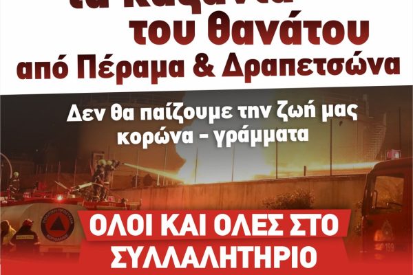 ΕΝΩΣΗ ΜΟΝΙΜΩΝ & ΔΟΚΙΜΩΝ ΛΙΜΕΝΕΡΓΑΤΩΝ ΟΛΠ Πειραιάς, 19/01/26 Κάλεσμα στο συλλαλητήριο την Δευτέρα 19/1 στις 6:30μμ στην Πλ. Ηρώων στο Πέραμα για την απομάκρυνση των δεξαμενών καυσίμων Η Ένωση Λιμενεργατών ΟΛΠ και ο Σύνδεσμος Εποπτών-Αρχιεργατών ΟΛΠ καλούμε στο συλλαλητήριο που διοργανώνουν σωματεία και φορείς για την απομάκρυνση των δεξαμενών καυσίμων και εύφλεκτων υλικών στο …