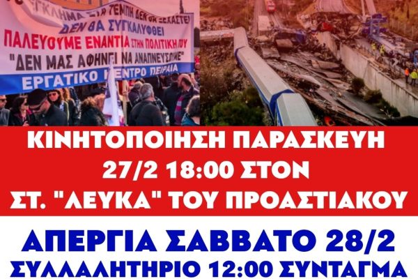 • 3η επέτειος από το έγκλημα στα Τέμπη Όλοι στην απεργία – Όλοι στις Συγκεντρώσεις σε όλη την Ελλάδα στις 28 Φλεβάρη 2026